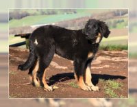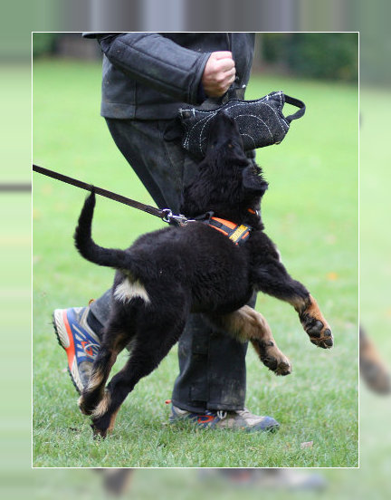 | CAC - LG OLNDS | 6.5.2017 | Delmenhorst | Gebrauchshundklasse, V3 | Ein fast 7 Jahre alter mittelgroßer mittelkräftiger SM Rüde mit mittelkräftigem Kopf, korrekt angesetzten und getragenen Ohren, mittelbraunem Auge, mittlerem Pigment, komplettes Scherengebiss, Hoden vorhanden. Das tiefschwarze schlicht gewellte Haarkleid hat eine sehr schöne Länge und kompletter mittelblonder Markenzeichnung, die am Brust und Fang leicht verwaschen ist, an der Brust kleiner Brustfleck. Vorder- und Hinterhand sind gut gewinkelt, in der Bewegung ist die Hinterhand eng, die Vorderhand paddelnd, in der Kreisbewegung zeigt der Rüde ein flüssiges Gangwerk, die anatomisch korrekte Rute ist von knapper Länge und wird in der Bewegung korrekt getragen. Der Rüde zeigt ein ruhiges freundliches Wesen. |